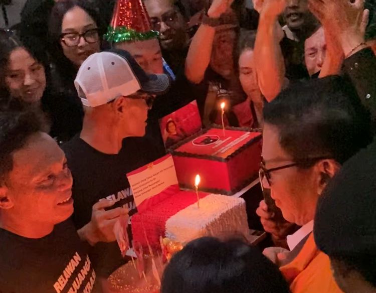Jakarta – Sekjen PDIP Hasto Kristiyanto mendapatkan kejutan ucapan selamat ulang tahun dari pendukungnya setelah selesai menjalani persidangan di pengadilan Tipikor Jakarta Pusat, Kamis (10/072025).