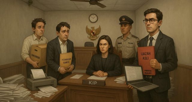 Maka, panggung harinya pun tiba. KIP bersidang untuk pertama kalinya pada Senin, 17 November 2025. Ketua majelis, Rospita Vici Paulyn, tampil seperti hakim di drama Korea, lengkap dengan tatapan menusuk yang bisa membuat mahasiswa salah jawab “presensi” mendadak ingin mengulang kuliah.