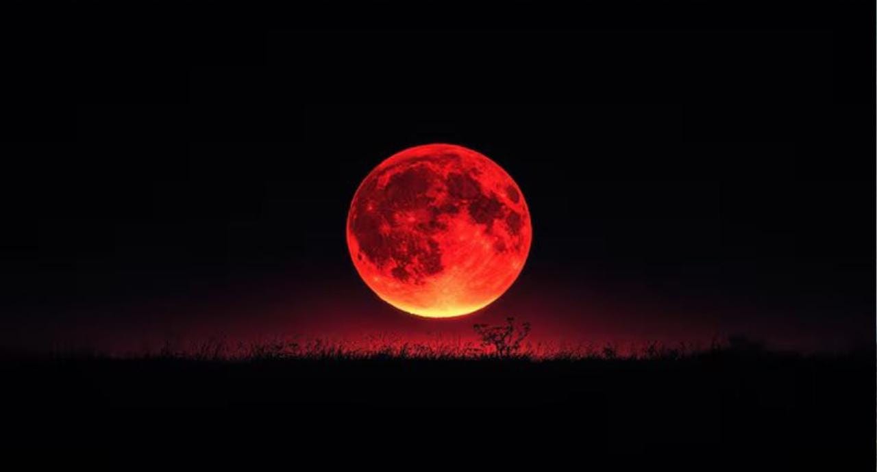 Saat _Blood Moon_ berlangsung, langit malam —kali ini tengah malam jelang dinihari— seolah berubah panggung. Bulan yang biasanya putih perak kini menggantung redup dengan rona merah tembaga, seperti bara yang membara perlahan di kegelapan.