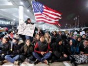 Koran Sulindo - Ribuan orang di bandara San Francisco, Amerika Serikat (AS) membawa spanduk sambil melambaikannya. Mereka berteriak dan mengecam kebijakan yang diterapkan Presiden...
