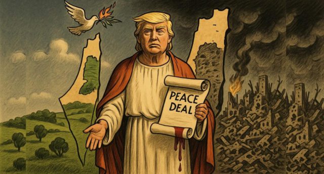Nama juru selamat itu: Donald J. Trump. Ia datang bukan membawa salib, tapi proposal perdamaian; bukan menumpahkan anggur, tapi minyak; bukan menyembuhkan yang luka, tapi menandatangani kontrak senjata. Dunia bersorak. CNN, BBC, bahkan Aljazeera menyiarkan kabar: Hamas setuju proposal Trump.