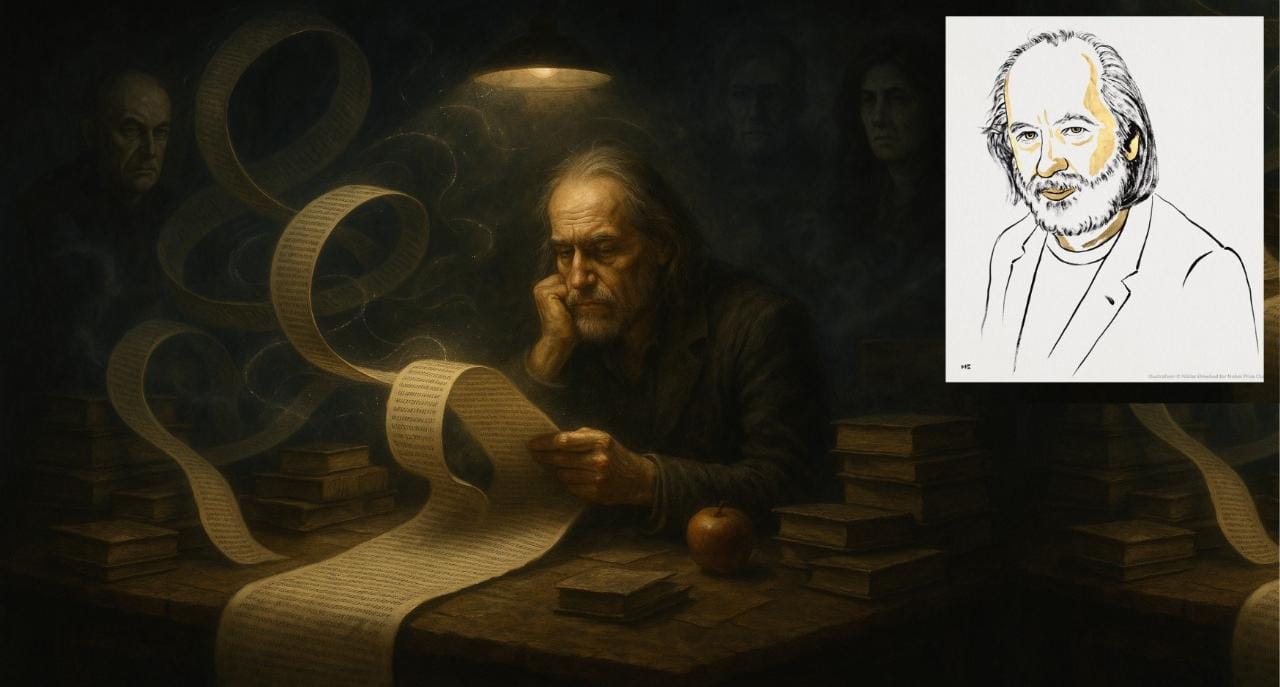 Krasznahorkai, kata Tóibín, seperti akrobat bahasa yang berjalan di tali tegang antara logika dan kegilaan — dan dengan sengaja menolak jatuh. Ia memanjangkan kalimat seperti seorang biarawan yang sedang berzikir di tengah kiamat: satu klausa demi klausa, menelusuri ketakutan dan kesadaran manusia yang terus membelah diri, menggigil di tepi makna.