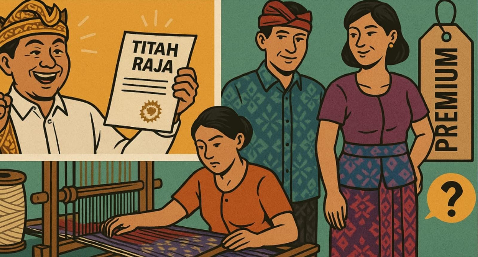 Setiap butik yang lulus pembinaan mendapat sertifikat resmi, seperti label halal di warung bakso. Dan setiap kain disertai narasi —“Ditenun oleh Bude Keling, benang dari kapas Blahbatuh, motif warisan abad ke-17”— supaya pembeli merasa membeli cerita, bukan sekadar tekstil.