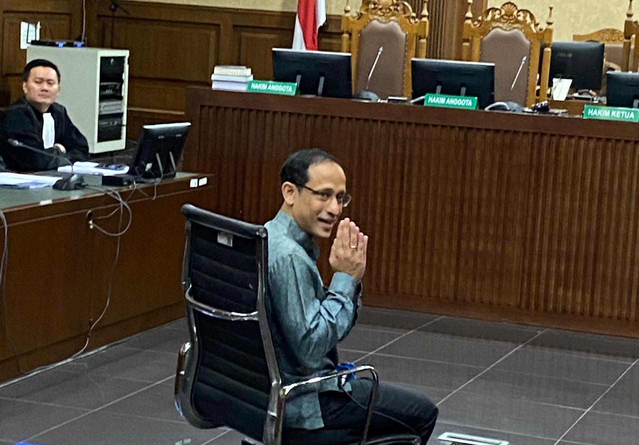 Nadiem terpantau masuk ke ruang sidang Hatta Ali sekitar pukul 10.19 WIB. Sidang kali ini diagendakan pembacaan dakwaan yang akan disampaikan Jaksa Penuntut Umum (JPU).