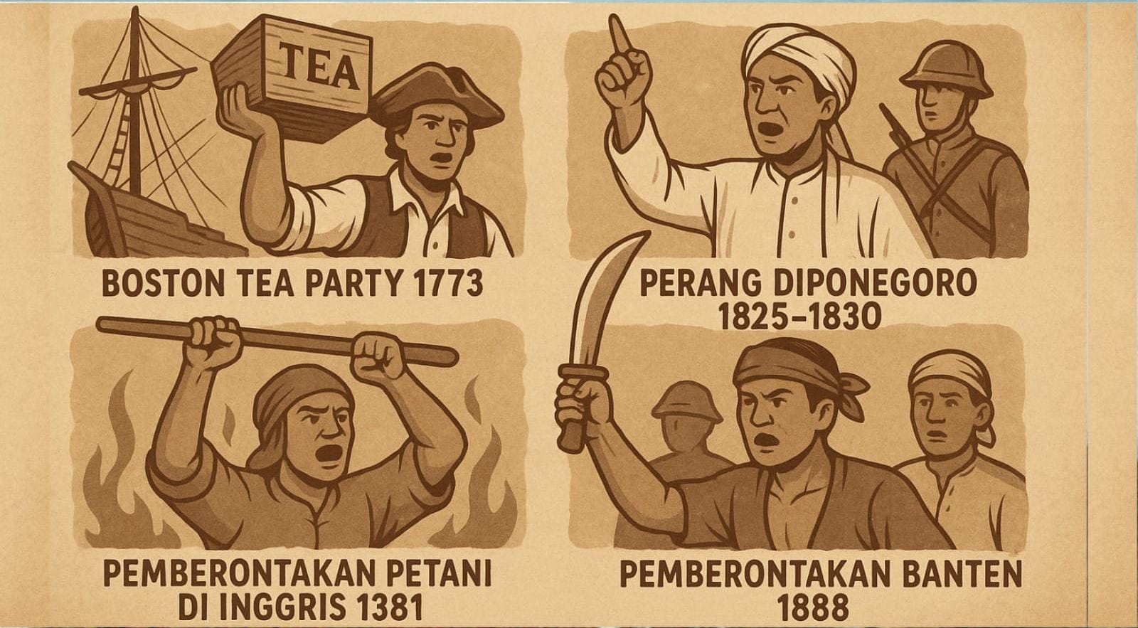 Sejarah dunia, termasuk Indonesia, mencatat bahwa pajak yang mencekik hampir selalu menjadi titik awal gejolak rakyat. Kebijakan pajak yang menekan rakyat kerap menjadi sumbu pemberontakan, dari Revolusi Amerika hingga Perang Diponegoro dan pemberontakan Banten.