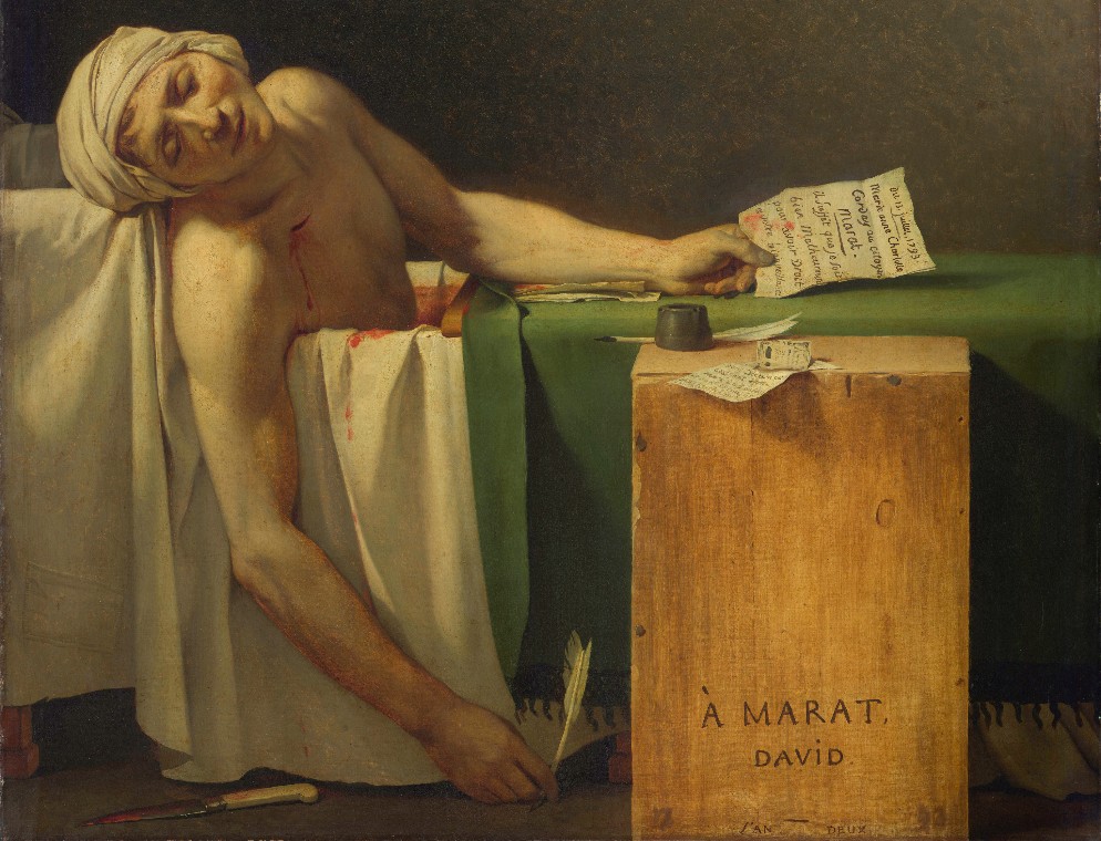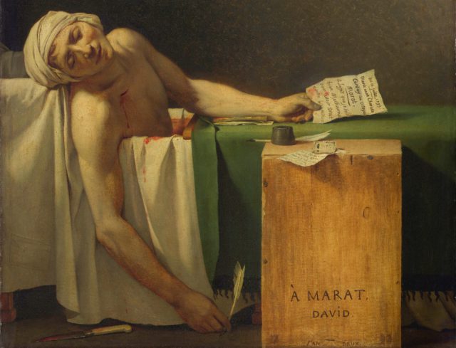 Pembunuhan Jean‑Paul Marat oleh Charlotte Corday mencerminkan kegilaan dan idealisme yang saling berkelindan dalam Revolusi Prancis.