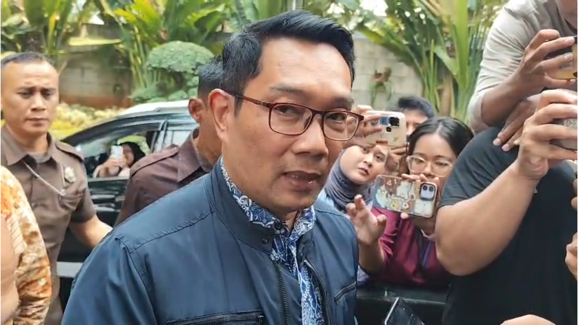 RK datangi KPK untuk klarifikasi terkait kasus korupsi pengadaan iklan di Bank Pembangunan Daerah Jawa Barat dan Banten (BJB). RK tiba di KPK sekitar pukul 10.40 WIB didampingi kuasa hukumnya. RK terlihat mengenakan kemeja batik dan jaket berwarna hitam.