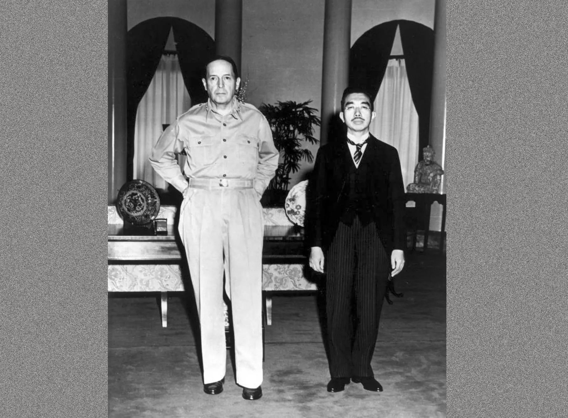 Sebelumnya tidak ada fotografer yang diperbolehnkan mendekati Kaisar untuk mengambil foto, karena saat berdiri berdampingan dengan MacArthur, postur tubuh dan tinggi badan Kaisar terlihat sangat pendek dibandingkan MacAthur yang memiliki posttur tinggi besar.